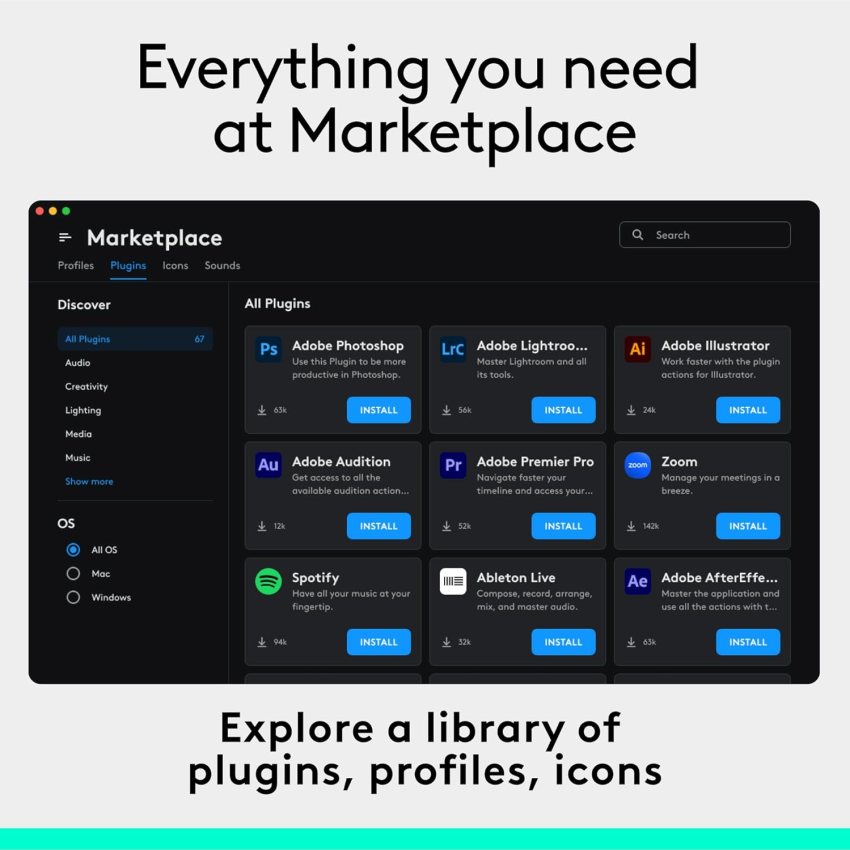 Discover More on Marketplace: Find a growing library of actions and plugins, recommended profiles, icon packs, and more on the marketplace in the Logi Options+ app (2)
