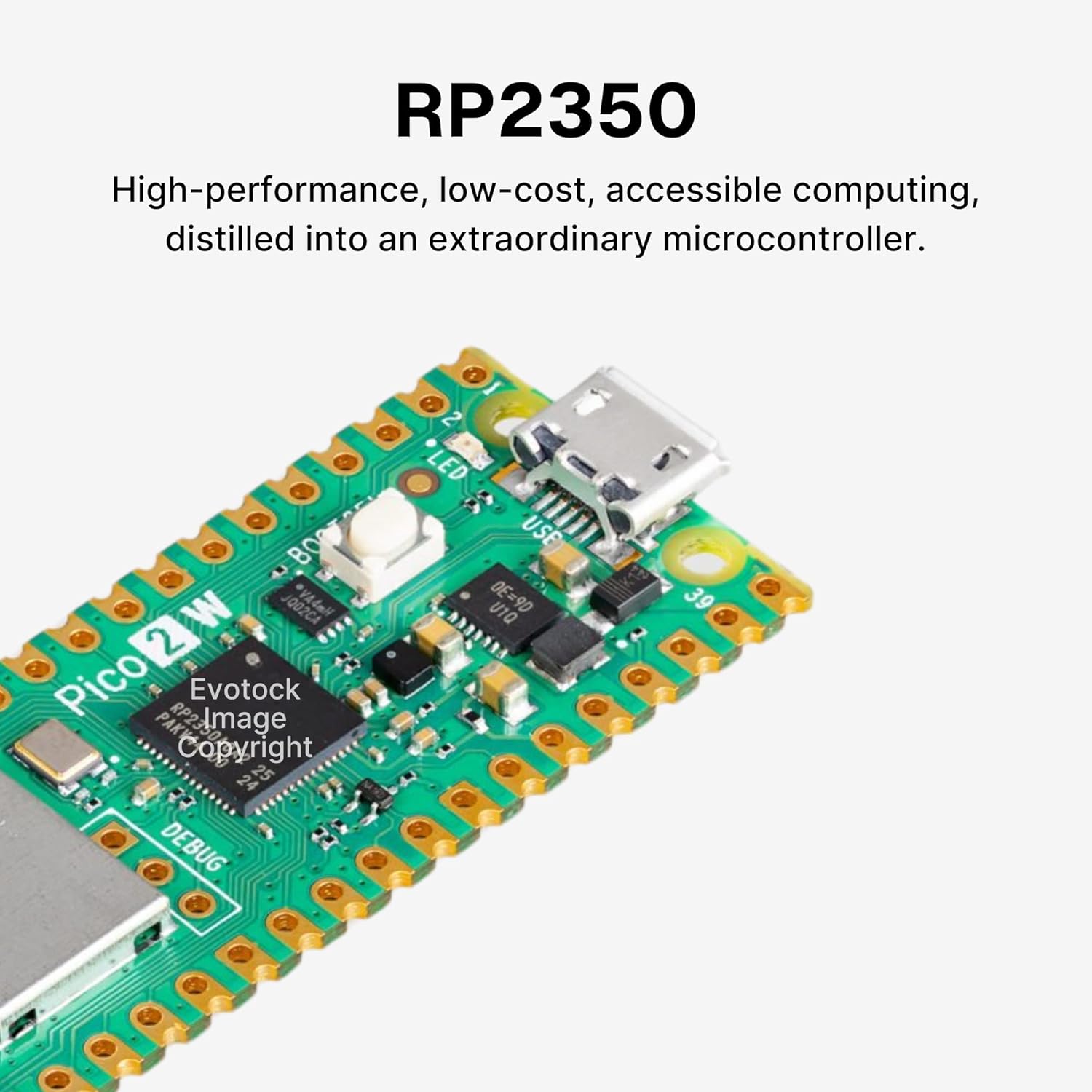 High Performance: Upgraded RP2350 processor with dual Arm Cortex-M33 and RISC-V Hazard3 cores.