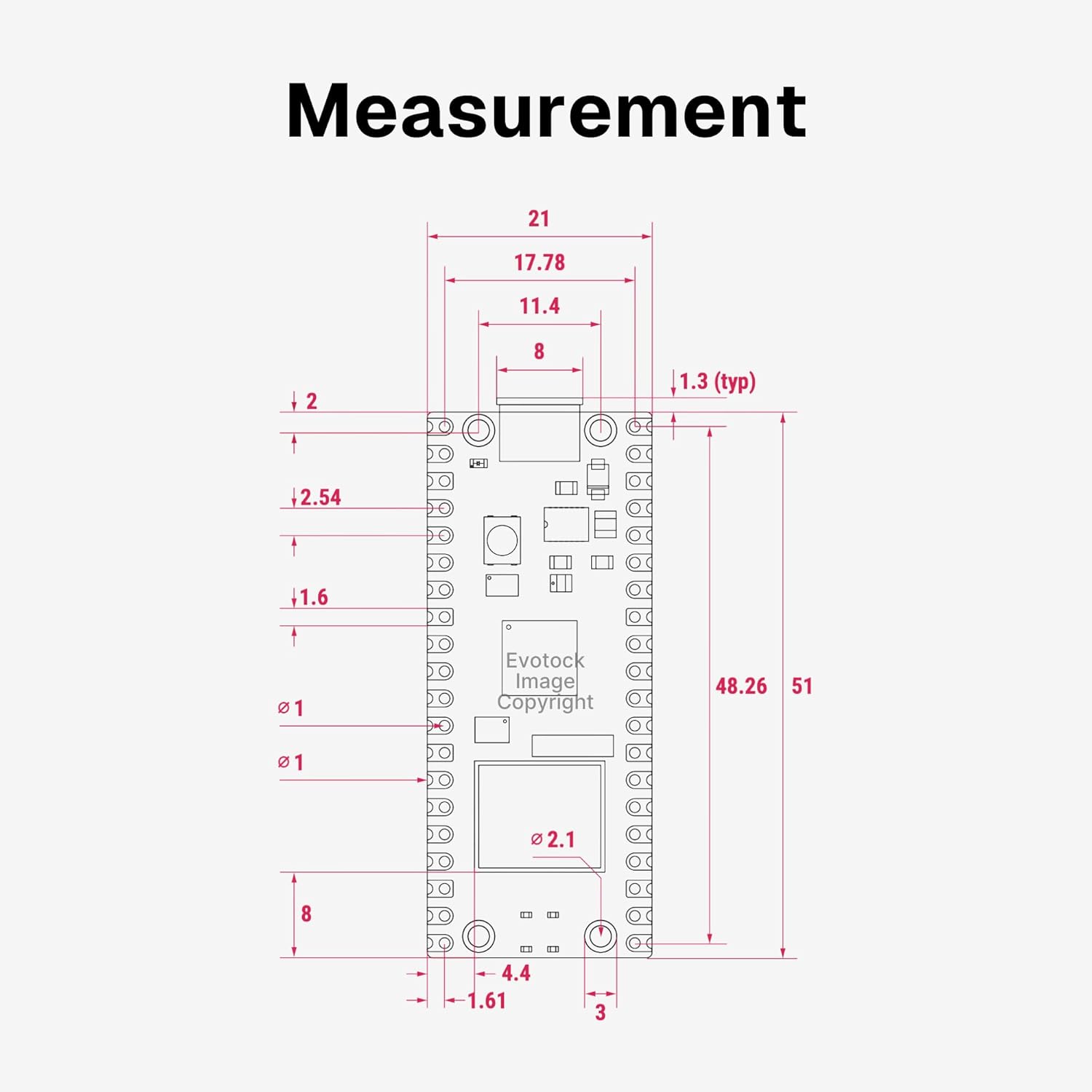 Compact Design: Small form factor (21mm x 51mm) suitable for embedded systems.