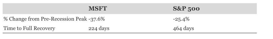 Even the 2008 crisis 59.1% plunge ended with a peak gain by 2013. MSFT consistently outperforms on recovery speed.