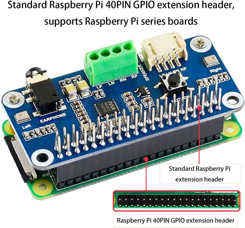 Standard Raspberry Pi 40PIN GPIO extension header, supports Raspberry Pi series boards, Integrates WM8960 low power stereo CODEC, communicates via I2S interface.