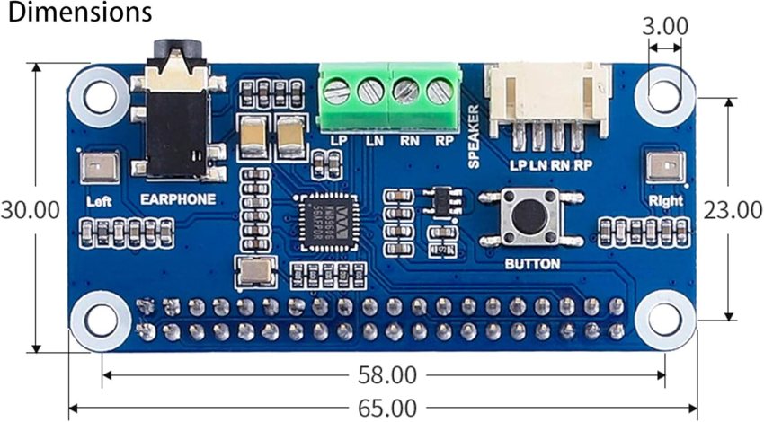 This is a sound card HAT designed for Raspberry Pi, low power consumption, supports stereo encoding / decoding, features Hi-Fi playing / recording, what’s more, it can directly drive speakers to play music.